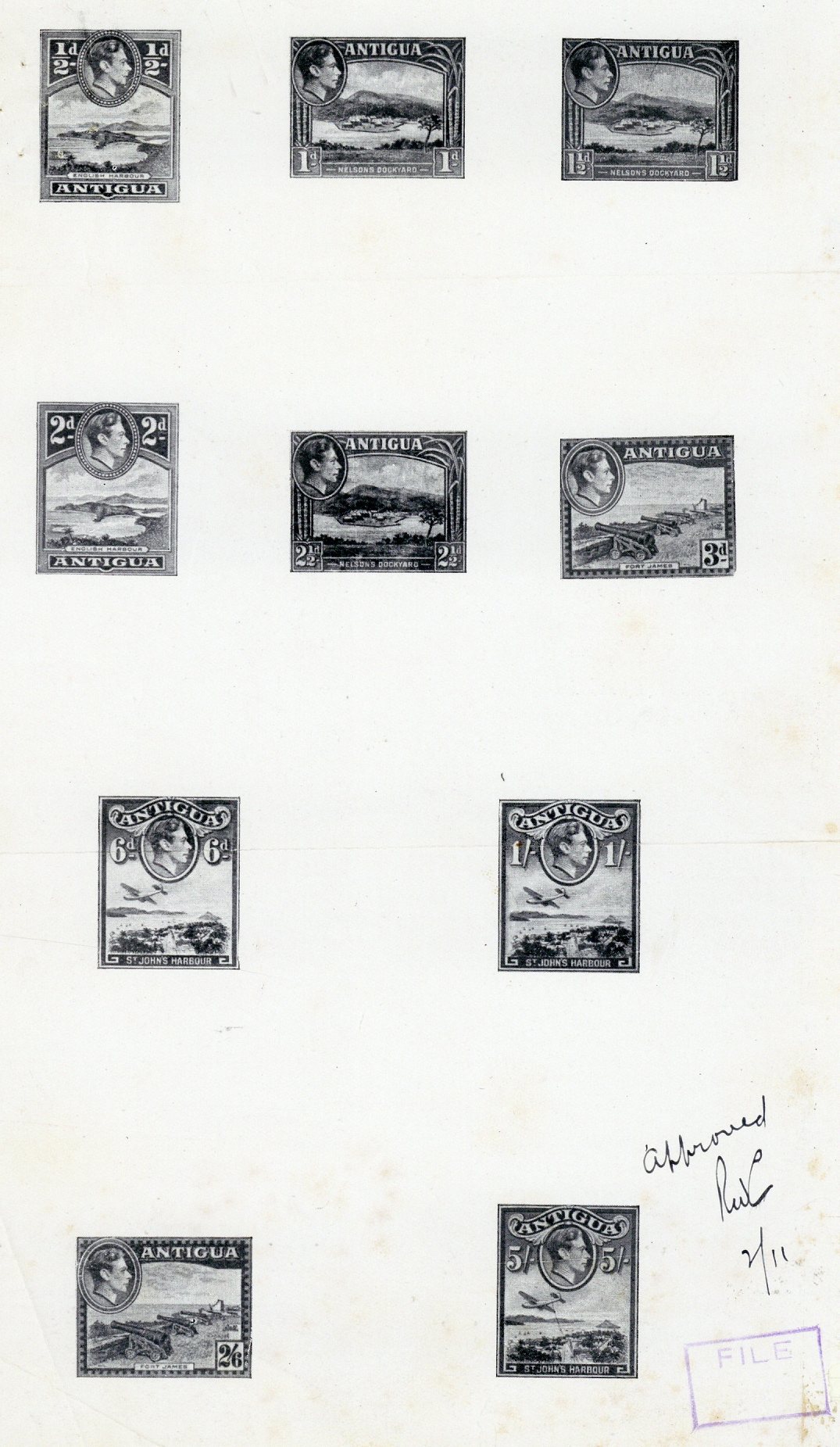 1938 ½d. to 5/- half tone impressions in black on glazed paper (152x245mm) marked "Approved", initialled and dated "2/11"; horizontal creases cross 6d. and 1/- impressions