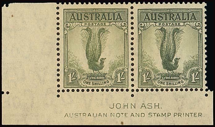 1/- grey-green, perf 15x14, a lower left corner pair with Ash imprint, variety watermark sideways, some toning/staining on reverse though still of good appearance, lightly mounted mint. The only recorded mint examples. S.G. 192w, £10,000; BW 209a, $17,500. Photo