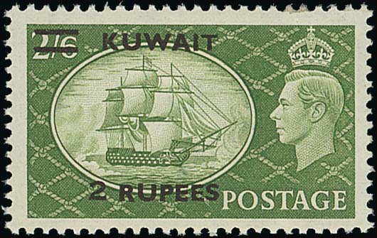 2r. on 2/6d. yellow-green, Type II, fresh and fine mint. S.G. 90b, £375. Photo