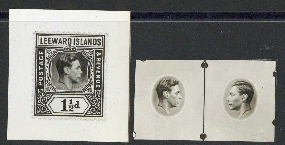 1½d. photographic essay in very close to issued design with simulated perforations and on photo paper (33x36mm.), and a pair of head proofs with King facing left and facing right on photo paper (38x22mm.), the smallest of three sizes submitted be De La Rue in February 1938 following a request to supply profile vignettes for the high value "Nyassa" type stamps
