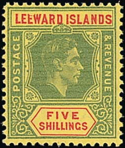 5/- green and red on yellow ordinary paper, Row 4/3 variety broken "e", fresh mint. Scarce. S.G. 112ba, £1,200+. Photo