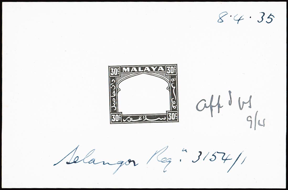 1935-41 30c. die proof of the frame in black on glazed card (92x60mm.), dated "8.4.35" and marked "appd 9/4", fine. Photo