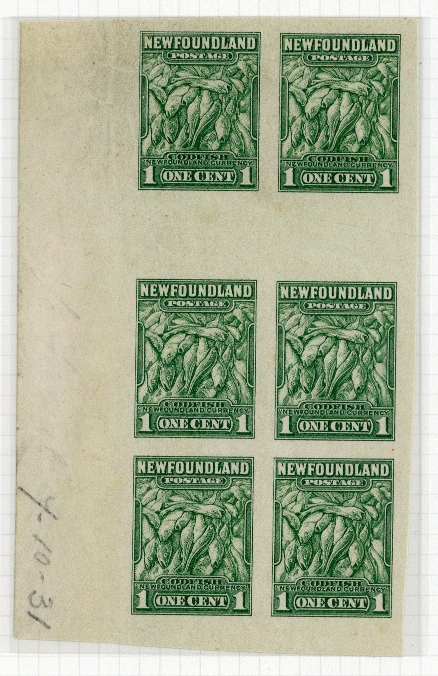 Booklet printing selection, comprising an imperforate block of six with interpanneau margin between, a block of four imperforate vertically and with five rows of perfs. at foot, a block of four with three vertical rows of perfs. at left, otherwise imperforate, an interpanneau block of nine with the two horizontal rows at foot imperforate, and a booklet pane as issued, fine with all but one mint