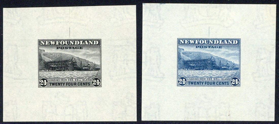 Frame die proof in bright blue on wove paper (86x66mm.) showing complete die impression, and issued design proofs on watermarked paper (both 56x49mm.) showing guide lines
