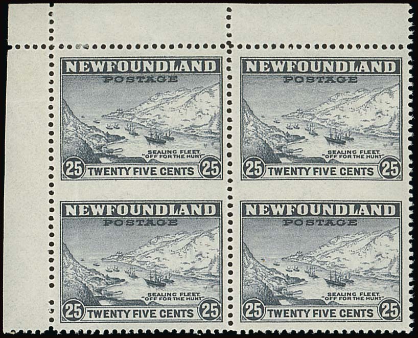Perf. 14 line upper left corner block of four, the vertical pairs variety imperforate between, fresh mint. Scarce. S.G. 219ba, £950+. Photo