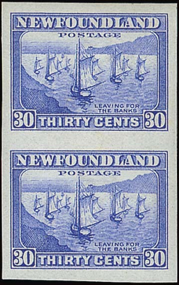A vertical pair, variety imperforate, fine mint. Scarce. S.G. 220a, £600. Photo