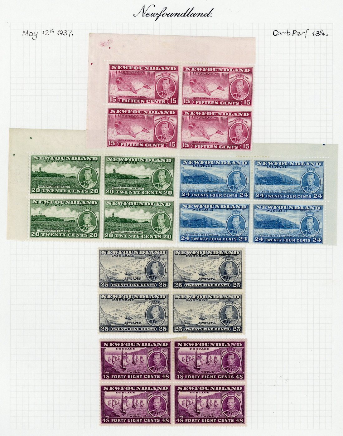 Line perf. 14 1c., 3c. (both Dies) and 7c. to 48c., line perf. 13½ 1c., 3c. (both Dies) and 7c. to 20c., 25c. and 48c., and comb perf. 13 1c., 3c. (both Dies), 8c., 10c. and 15c. to 48c., all in blocks of four with some marginal or from the corner of the sheet, fine mint and an attractive assembly. Cat. £2,200+