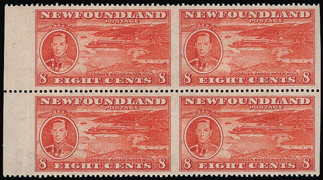 8c. scarlet line perf. 14 marginal block of four from the left of the sheet, variety imperforate vertically and accompanied by line perf. 14 and comb perf. 13 corner blocks of four, fine mint. S.G. 260b var.; Scott 236c. Photo
