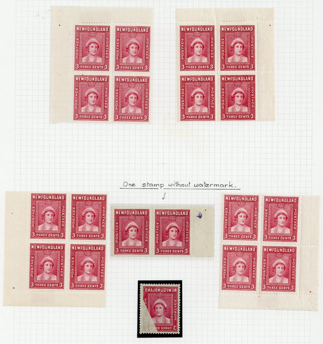 Comb perf. 13½ selection comprising a marginal pair with and without watermark, a single with fine nearly complete offset and blocks of four from the four corners of the sheet, fine mint