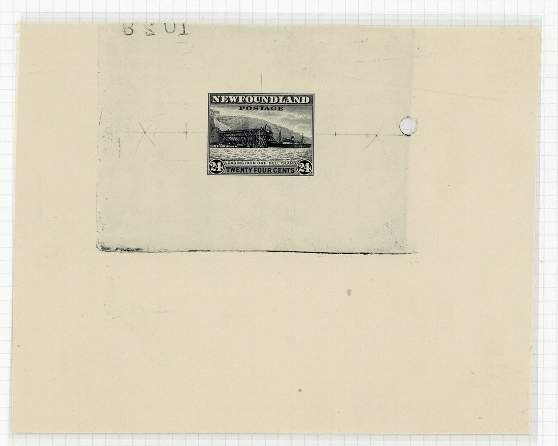 24c. in black on wove paper (132x105mm.) showing complete die impression, guide marks, crosses and die number
