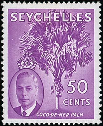 50c. reddish violet with Crown missing, short perf at lower left otherwise fine mounted mint. Rare. S.G. 167a, £1,700. Photo