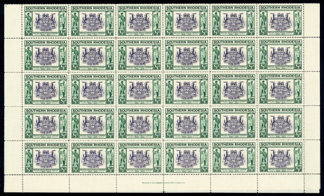 1940 Golden Jubilee ½d. to 6d., with additional 1½d., all in complete sheets with the 1½d. and 3d. showing listed varieties; unmounted mint. S.G. 53-59, £915
