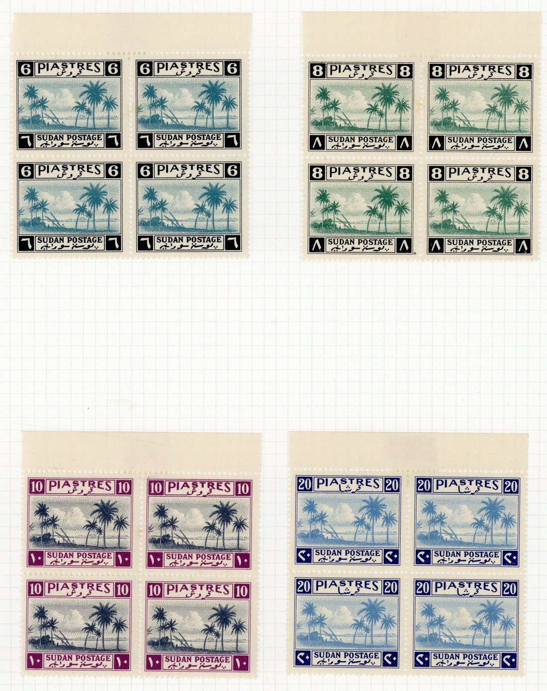 1941 1m. to 20p. set of fifteen in corner or marginal blocks of four, and 1m. to 15m. in interpanneau blocks of four, fine mint. Cat. £1,494+