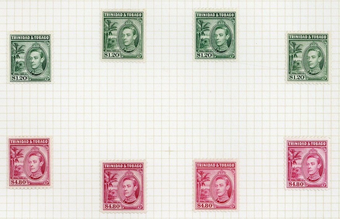 1938-44 1c. (4), 2c. (6), 3c. black and scarlet (2), 3c. green and purple-brown (6), 4c. chocolate (2), 4c. scarlet (4), 5c. (4), 6c. (7), 8c. (4), 12c. (5), 24c. (5), 60c. (5), $1.20 (4) and $4.80 (4), some shades, fine mint. S.G. 246-256, £520+