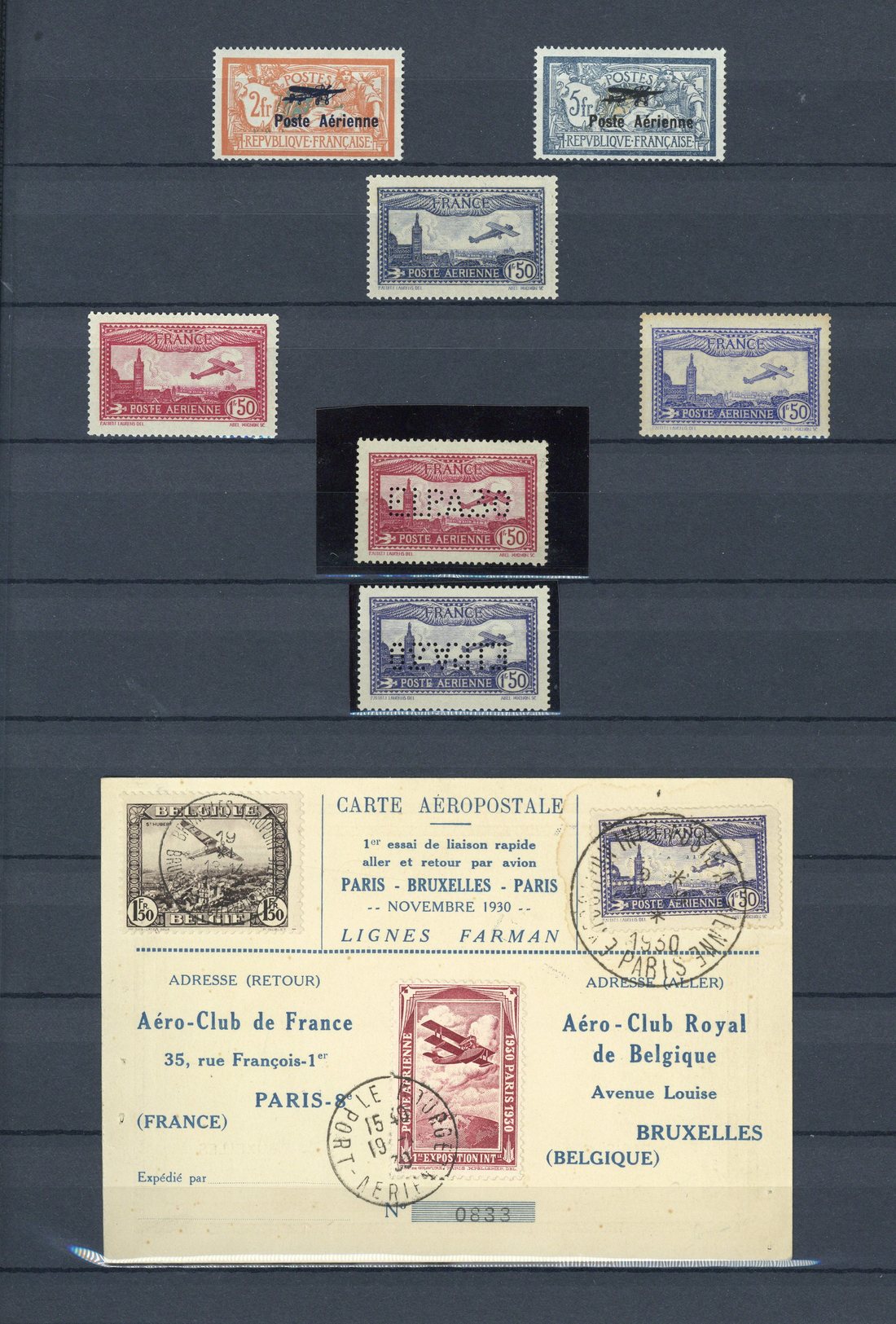 1927-85 airmail collection housed in a black stockbook, over 220 stamps including 1927 Marseilles (unmounted and well centred for these), 1930-32 1f. 50 bright ultramarine shade, 1930 1f. 50 blue and 1f. 50 lake each perforated "eipa30", 1936 85c. to 50f. unmounted mint, 1936 50f. ultramarine on rose unmounted mint, 1949-50 set, 1954 set, later issues with sheetlets of 10, etc., chiefly fine
