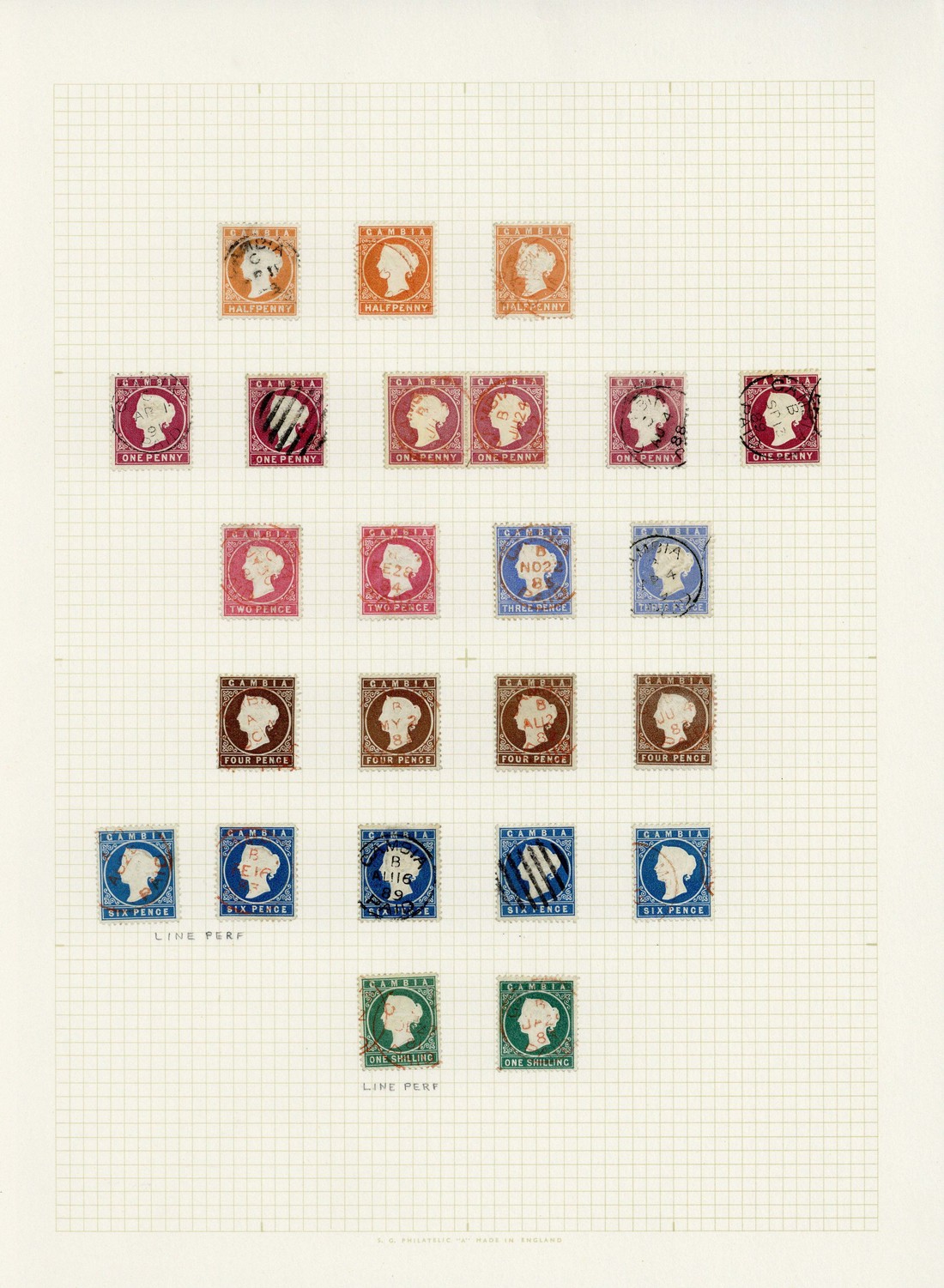 ½d. (3), 1d. (6 including a pair - a little faded), 2d. (2), 3d. (2), 4d. (4), 6d. (5, two line perf) and 1/- (2, one line perf), all used, mostly fine. S.G. 10B-20B, £770+