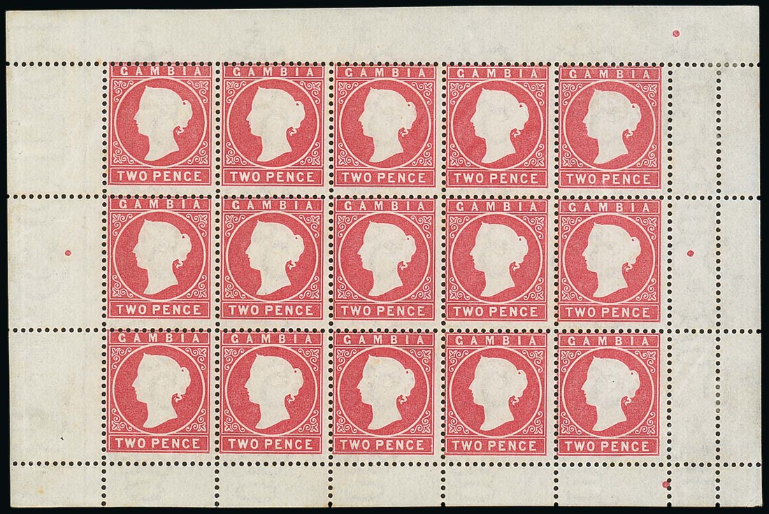 2d. rose complete mint sheet of fifteen, some gum creases at lower right otherwise fine. S.G. 13B. Photo