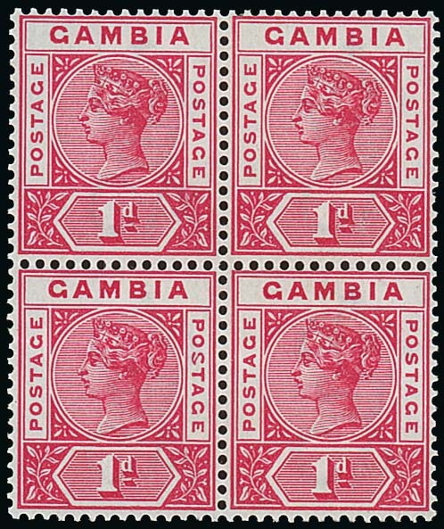 1d. carmine block of four, the lower left stamp with malformed "s", fine mint. S.G. 38/a, £425. Photo