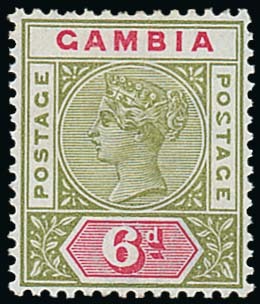 6d. olive-green and carmine with malformed "s", small hinge remnant, fine mint. S.G. 43a, £600. Photo