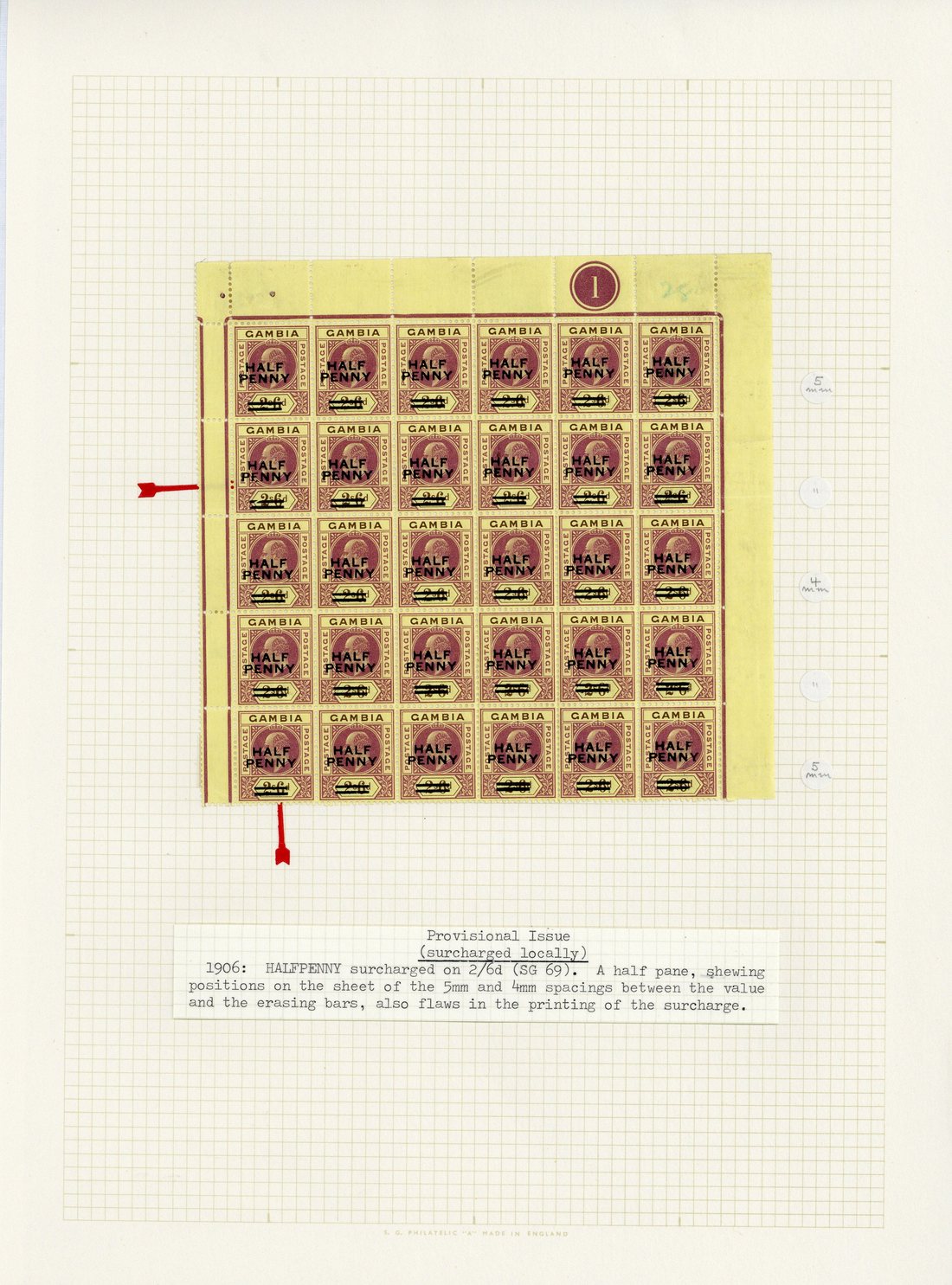 1906 (Apr.) "half/penny" on 2/6d. purple and brown on yellow, a block of thirty (6x5) being the top half of the right pane, small thin in top margin otherwise fresh and fine mint. S.G. 69, £1650