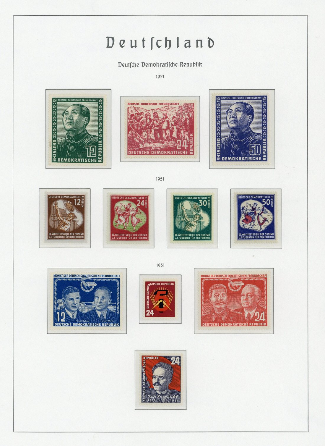 1949-81, an apparently complete unmounted mint basic issues collection arranged in two hingeless Lighthouse albums, contained in a carton, including 1951 Friendship with China, 1953 Marx miniature sheets perf. and imperf. Mostly good to fine. (thousands)
