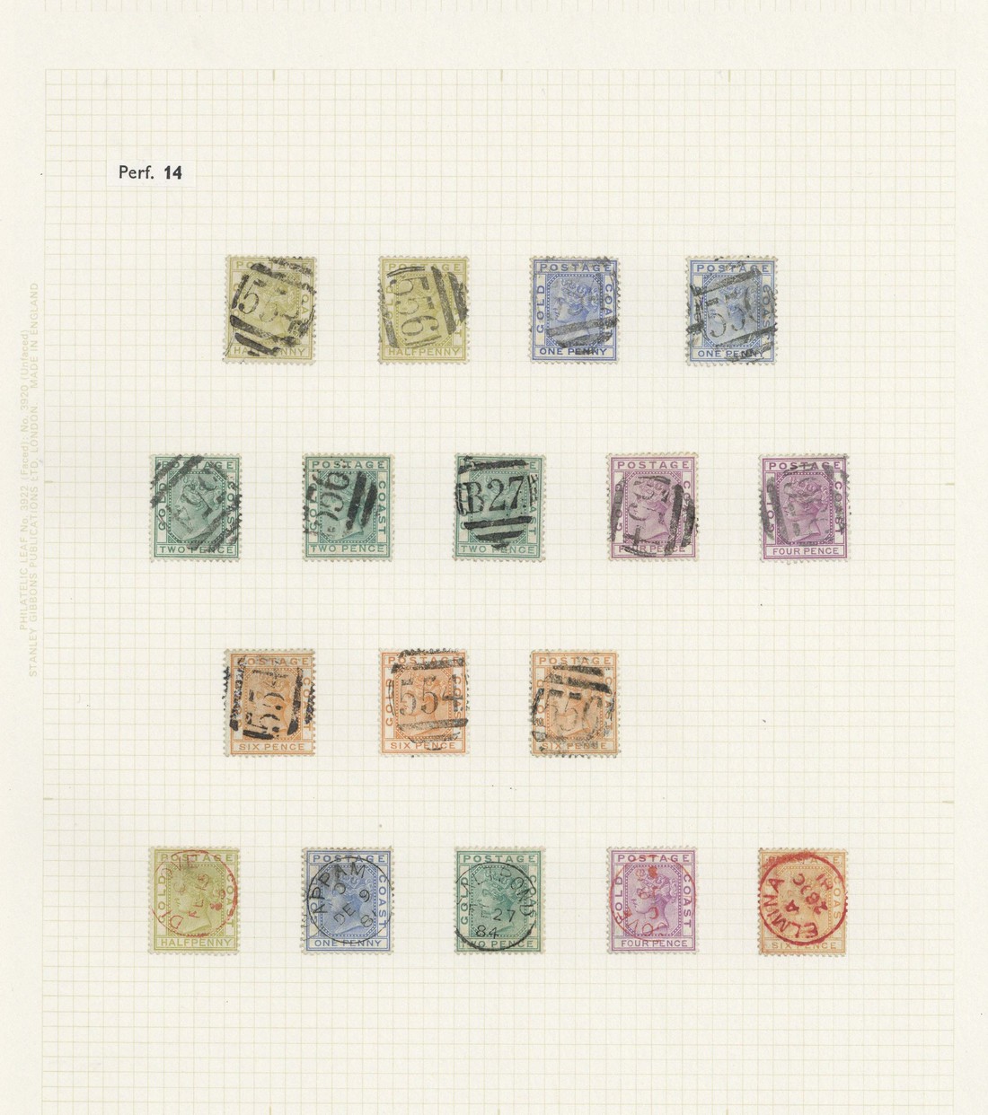 1876-89 predominantly used collection neatly mounted on pages, including 1876-84 perf. 14 CC ½d. (3), 1d. (2), 2d. (4), 4d. (3) and 6d .(4), 1883 CA ½d. olive-yellow (4) and 1d. blue (2), 1889 1d. on 6d. orange mint and used (7) including two of the 8mm setting mentioned in S.G. footnote, then a good selection (25) of 1884 CA issues including all values. Mostly very fine, and includes some choice postmark strikes. S.G. 4-19a, £1,200+