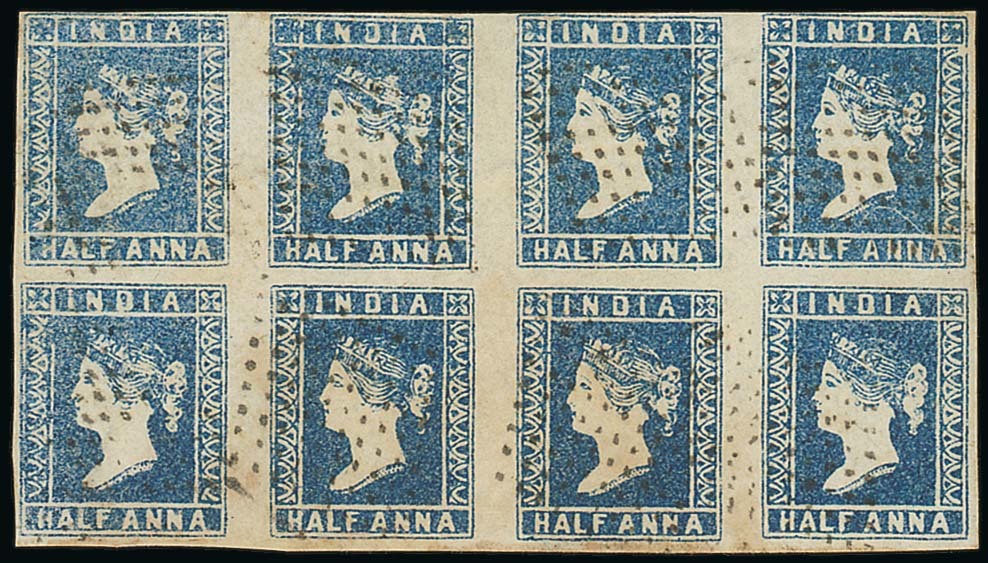 1854 ½a. Die I "B" Stone block of eight (4x2), [1-12], clear to good margins nearly all round and cancelled with diamond of dots; a trifle soiled though not unattractive. Photo
