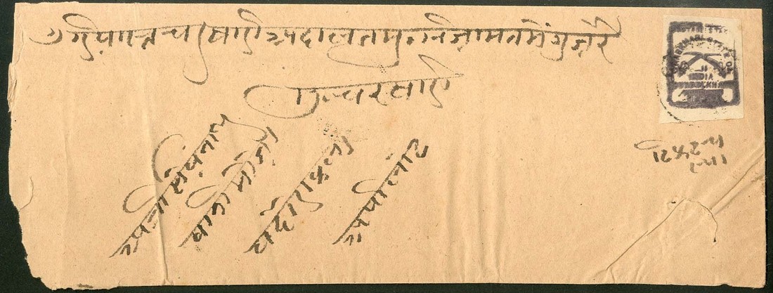 1912 1p. dull purple with good to large margins, lightly cancelled and tied on large native envelope (faults) addressed locally. Scarce. S.G. 27a. Photo