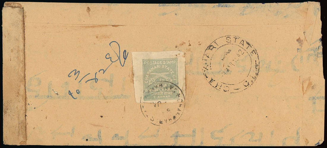1930-45 ½a. deep olive and 2a. light blue, both neatly cancelled and tied on reverse of native envelopes addressed locally. S.G. 34, 42
