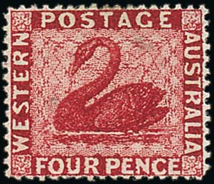 1876-81 CC, perf 14 4d. carmine, variety watermark Crown to right of CC and reversed, fine mint. Scarce. S.G. 74y, £650. Photo