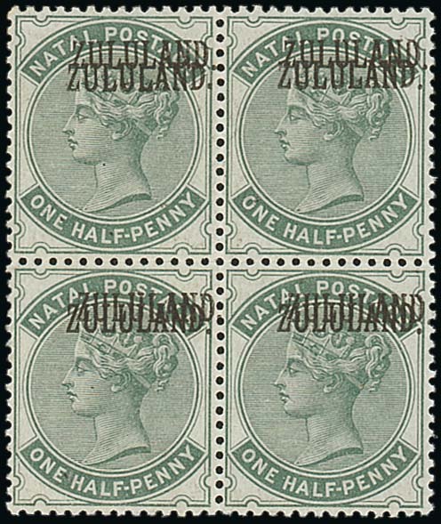 A block of four, variety overprint double, fresh very lightly mounted mint. A great rarity. S.G. 12a, £4,400+. Photo
