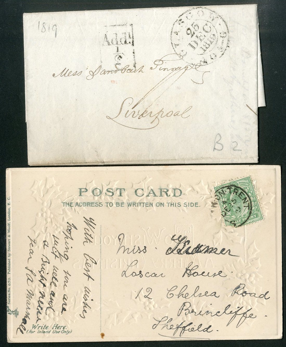 An early to modern accumulation of entire letters/envelopes/postcards, contained in two cartons, including pre-stamp with Dockwra type (3) and Bishop marks, Free with Irish, and good range straight-line handstamps, 1840 1d., 2d., Mulready 1d. (2, one used), exhibition, forwarded mail with additional stamps (5), instructional marking with 1940 envelope from Switzerland addressed to S.F. Rous, London (Sir stanley Rous was the Sixth Fifa President) with boxed "detained in france/during german/occupation" handstamp, postage due, postal stationery and registered mail. A most interesting lot well worth closer inspection. (hundreds)