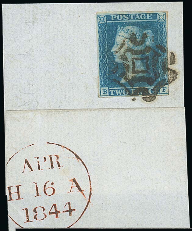 Norwich: Fine strikes tying Plate 25: LK and 1841 2d. Plate 3: BF, to separate dated pieces; the 2d. close at right, otherwise large margins and fine. Photo