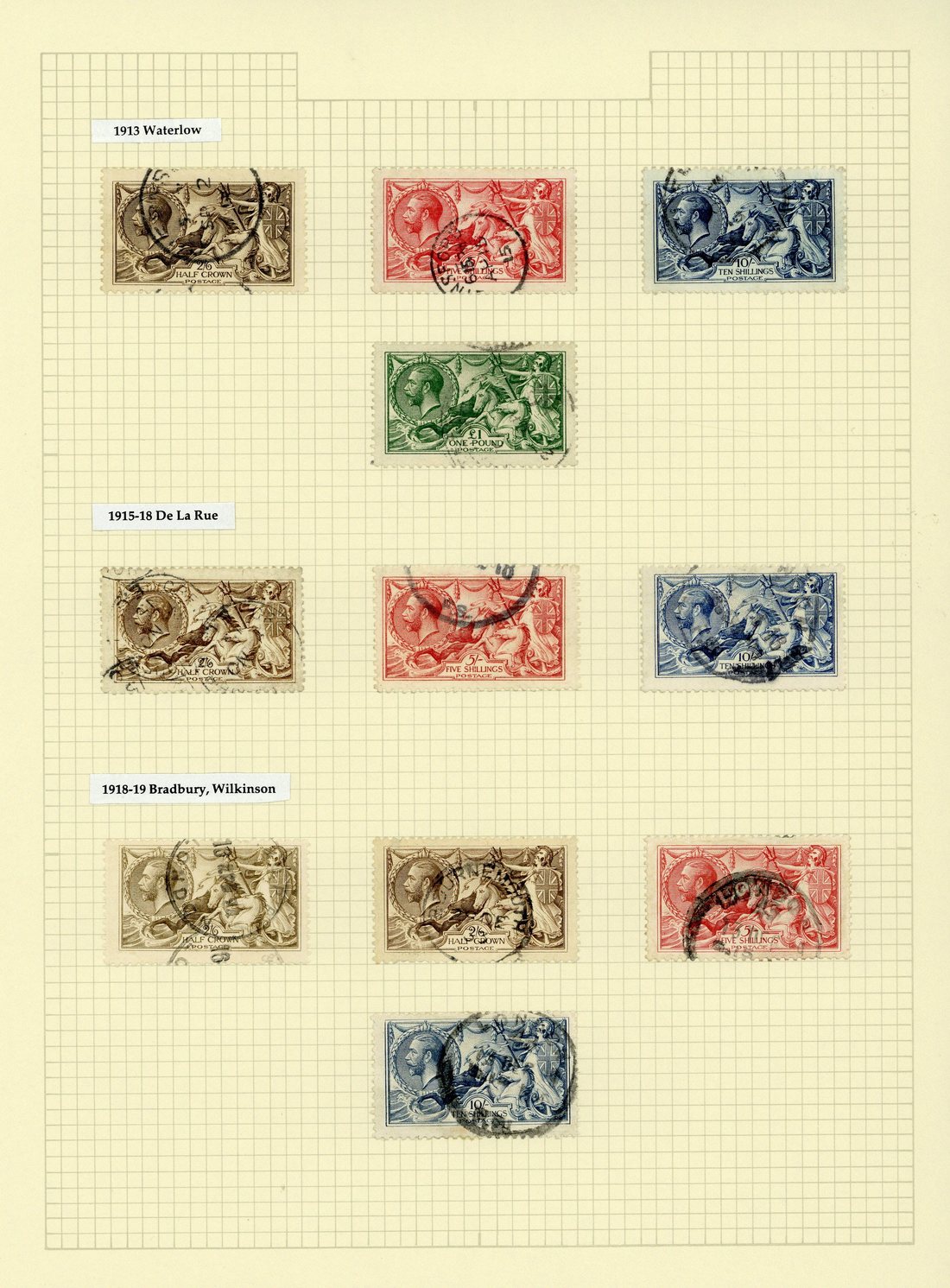 1911-97 mint and used collection (270+) on pages, including 1912-24 9d. olive-green watermark inverted (used), 1913 Waterlow 2/6d., 5/-, 10/- and £1 (used), De La Rue 10/- used, 1934-36 5d., 9d. and 10d. mint blocks of six, 1934 re-engraved 2/6d., 5/- and 10/- (used), etc., chiefly fine