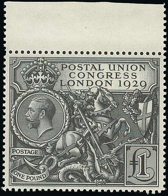 £1 black, unmounted mint, from the top of the sheet; fine. B.P.A. Certificate (1977). S.G. 438, £1,100. Photo