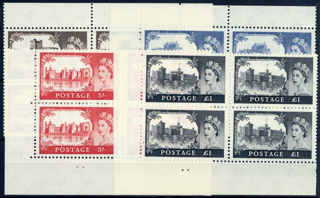 1959-68 De La Rue 2/6d. to £1, set in unmounted mint corner blocks of four; fine. S.G. 595-598, £780