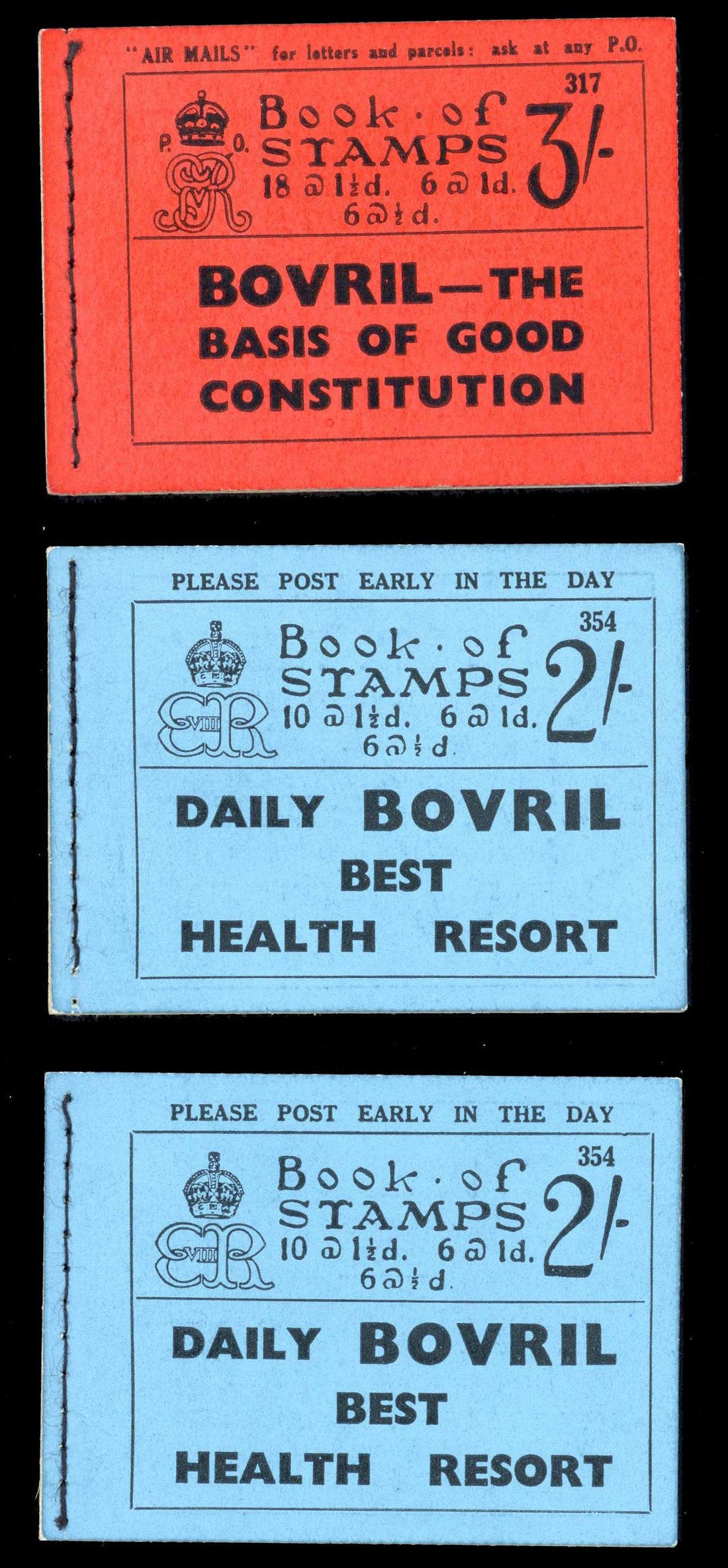 1935-37 selection comprising 1935 3/- (Edition 317), 1936 2/- (2, both Edition 354), 3/- (Edition 322) and 1937 2/- (Edition 388) cover with vertical crack by stitching. Generally good to fine. S.G. BB29, BC2/3, BD11, £2,050