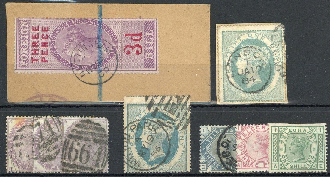 An interesting selection of back the book issues, including College stamps with 1879 Hertford College, Oxford (½d.) bright mauve adjoining mint blocks of six and nine, fiscal stamps postally used, post office training/testing, Revenue with Jersey 1912 1/- carmine affixed to undated parchment, Telegraph, etc., mixed condition (139 stamps)