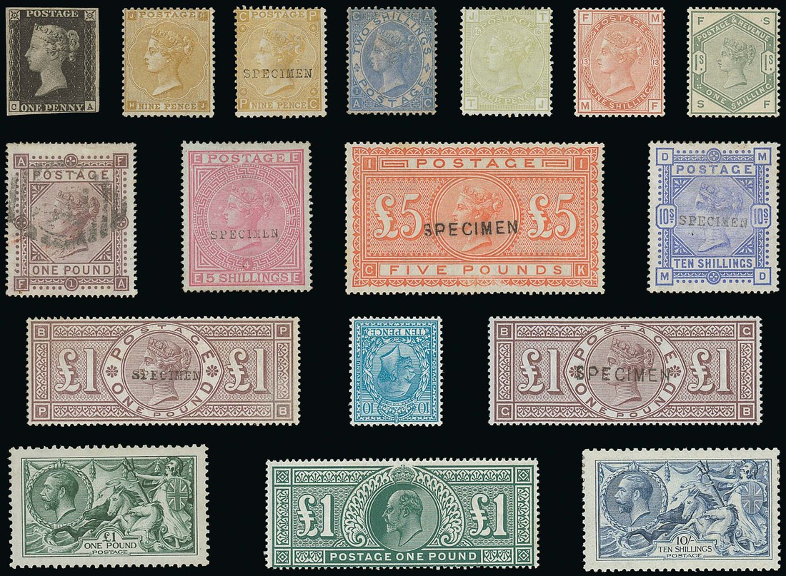 1840-1992 collection housed in six albums and loose, contained in a carton, thousands including 1840 Mulready 1d. used 2d. unused, 1840 1d. Plate V unused, 2d. used, 1862-64 9d. unused, a range of other surface printed issues to 1867-80 2/- brown used (reperforated), 1867-83 watermark Maltese Cross £1 used, watermark Anchor blued paper 5/- overprinted "specimen", 10/- used, white paper £5 orange overprinted "specimen", 1873-80 watermark Spray 1/-, 1880-83 1/-, 1884 watermark Crown £1 brown-lilac overprinted "specimen", 1888 watermark Orbs £1 brown-lilac overprinted "specimen", 1883 or 1884 set, 1887-92 £1 green overprinted "specimen", Edward VII issues with values to £1, 1912-24 10d. watermark inverted, 1913 watermark Multiple Cypher ½d. and 1d., 1913 Waterlow 2/6d. to £1, 1915 De La Rue 10/-, 1929 P.U.C. £1, 1939-48 set, a fine range of E.II issues with 1955-58 De La Rue 2/6d. to £1, graphite lined issues, early phosphor commemorative sets, Year books, first day covers, Channel Islands, etc., condition mixed with many fine. A valuable and useful lot worthy of careful examination. Photo