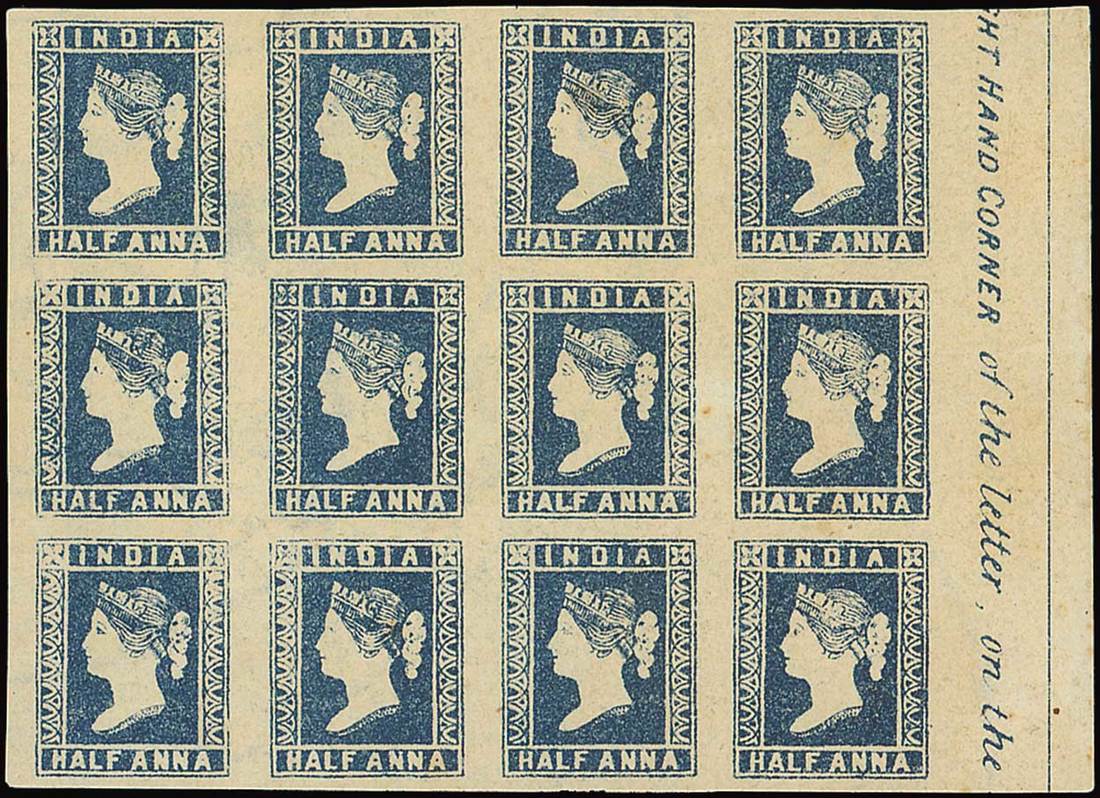 Deep blue marginal block of twelve , [53-72], fine and most attractive. Photo