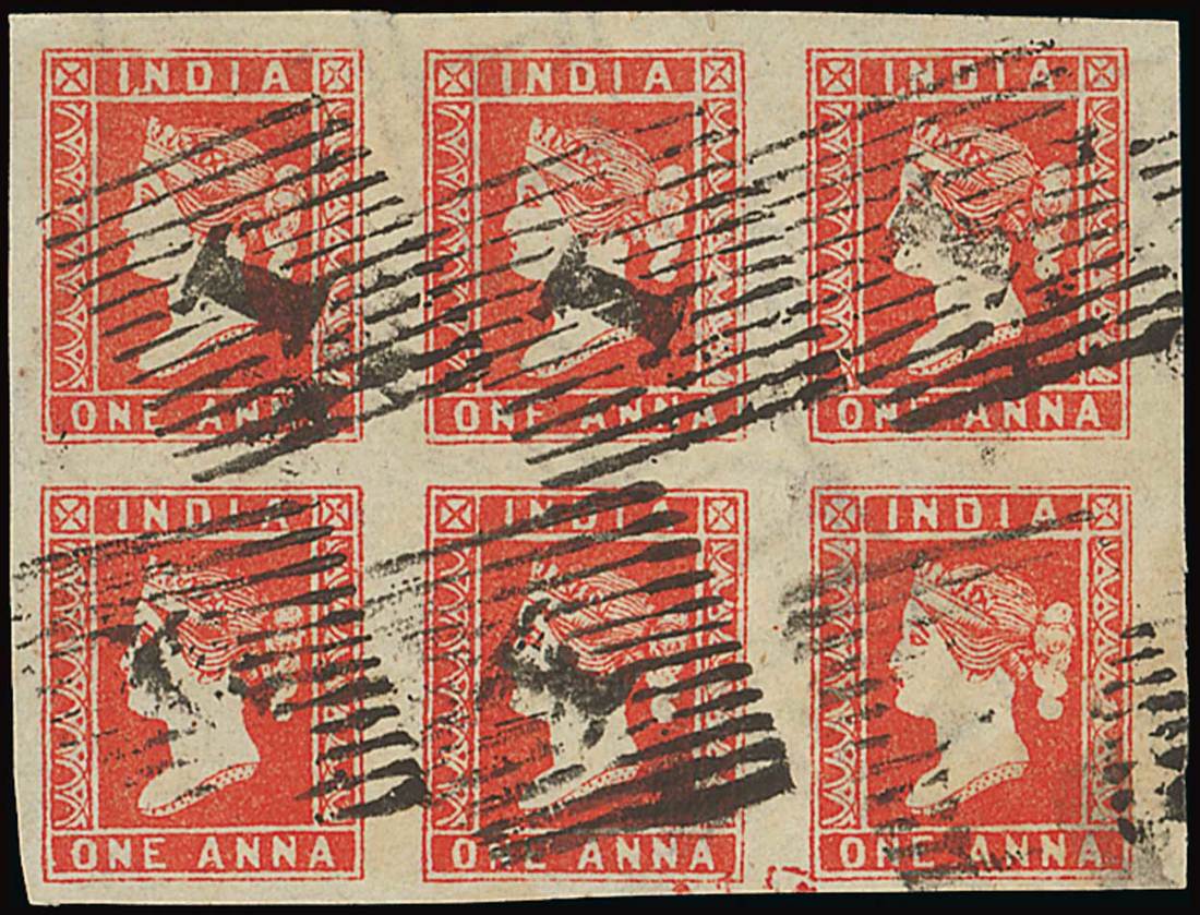 Red block of six (3x2) with each neatly cancelled "1" in diamond of bars, fine and a scarce multiple. Photo