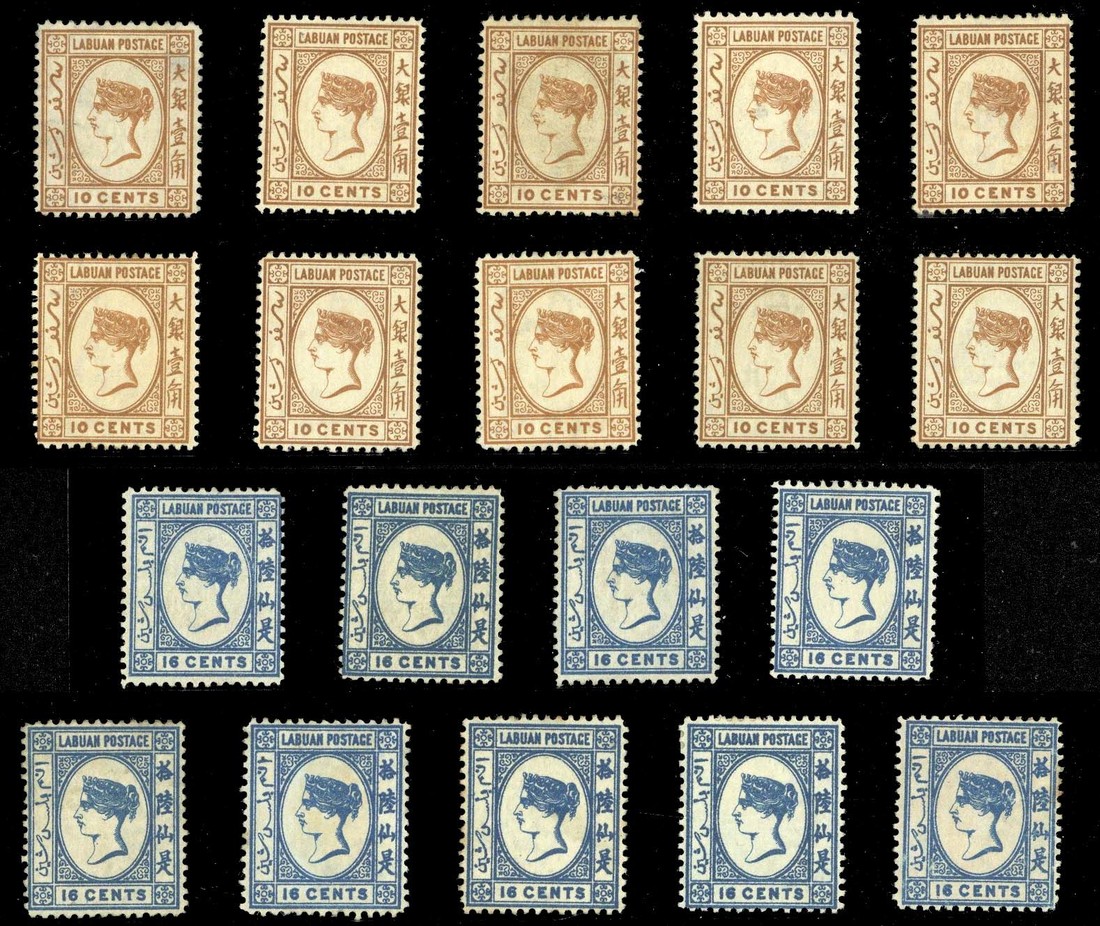 1883 CA 10c. yellow-brown complete unused reconstruction of the sheet of ten (5x2), four with original gum, and 16c. blue almost complete reconstruction (missing [5]), five with gum; mostly good to fine. S.G. 19-20, £1500
