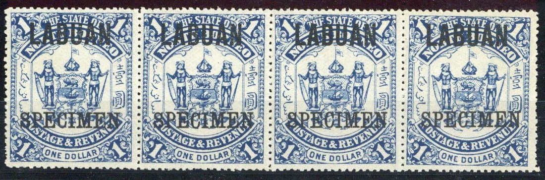 1896 25c., 50c. and $1 in strips of four, each overprinted "specimen", fresh and fine mint. Rare multiples. S.G. 80s-82s, £280