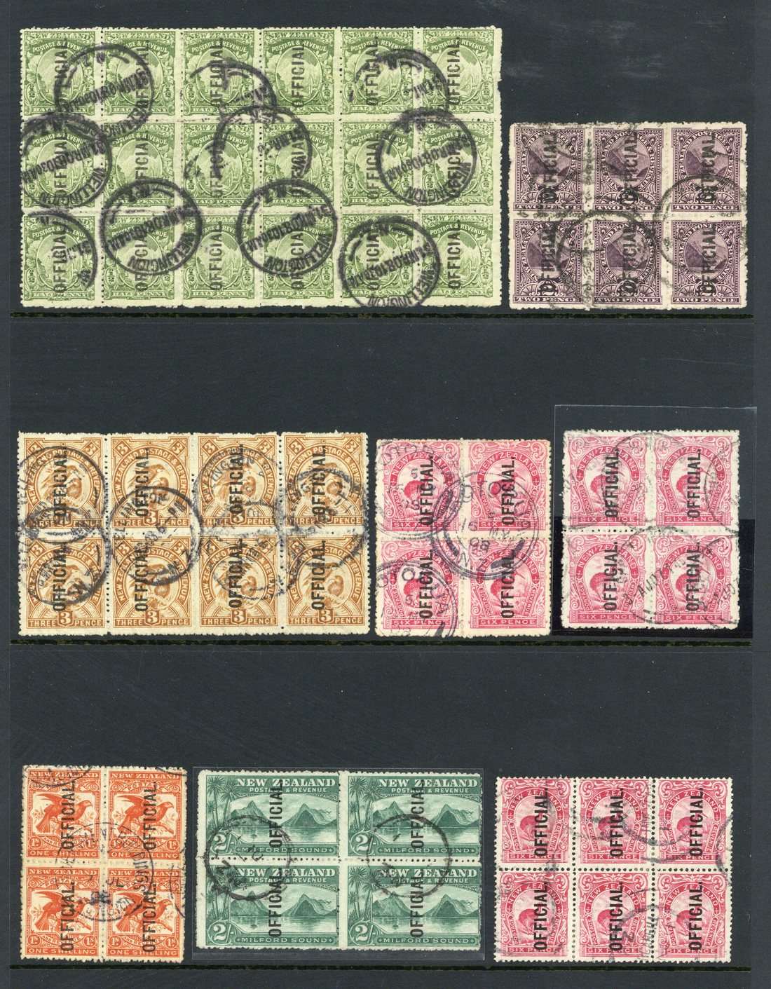 ½d. block of eighteen (6x3), 2d. block of six (3x2), 3d. block of eight (4x2), 6d. (2), 1/- and 2/- blocks of four, small format 6d. block of six (3x2), used, chiefly fine. An unusual lot. S.G. £1,095. C.P. $3,800