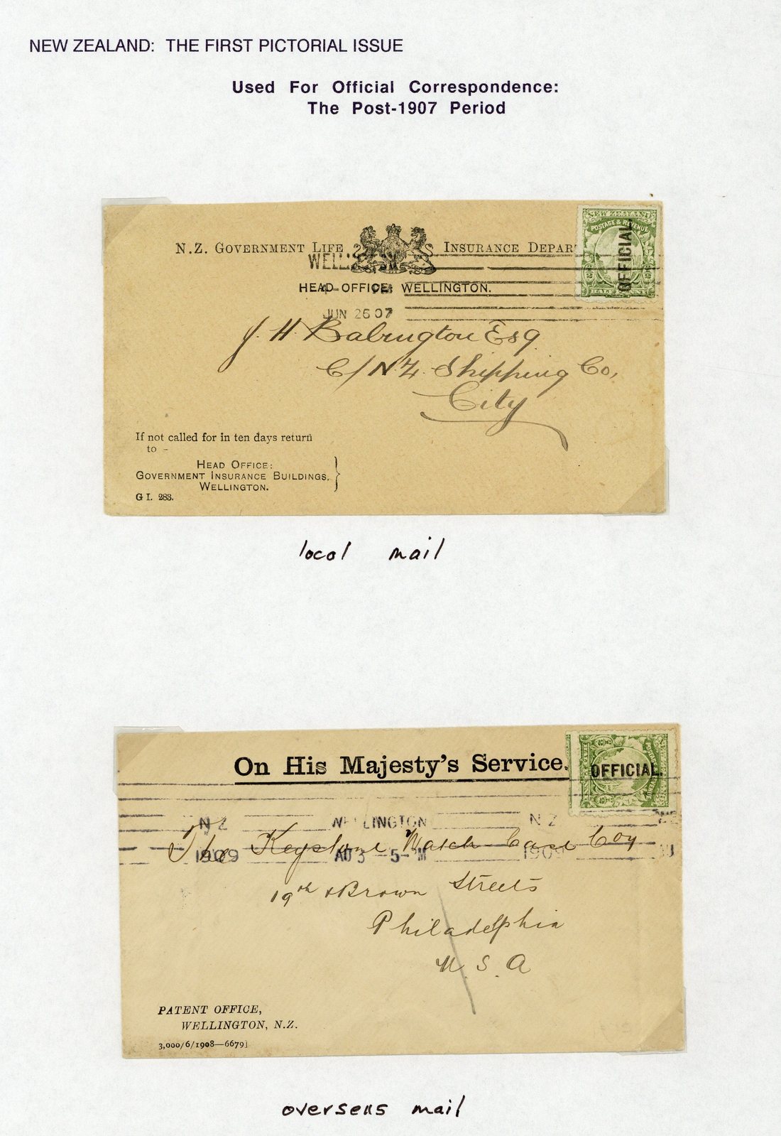 ½d., selection (45) including perf. 15x14 block of twenty (4x5), also five covers or cards with 1909 "On Bankruptcy Business Only" with violet "unclaimed" and bearing a perf. 14 pair, 1910 "On Public Trust Office Business" card bearing a single, 1911 O.H.M.S. black corner envelope franked by a single, etc., fine