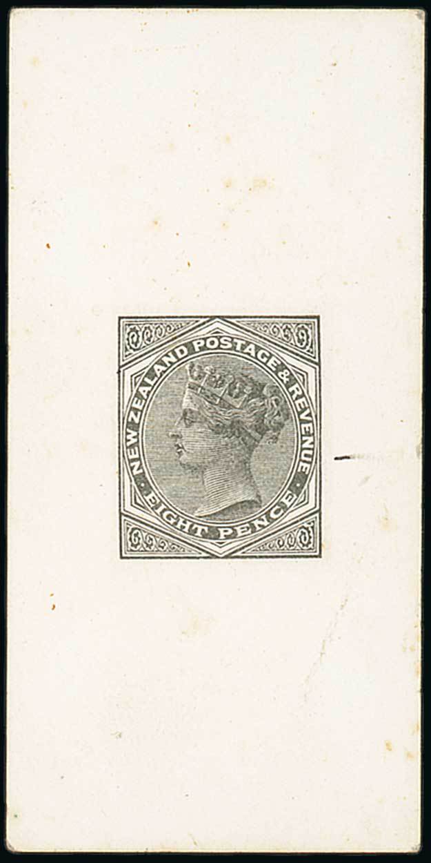 1882-98 Second Sideface, Bock and Cousins 8d. die proof in black on card (38x75mm.), the odd mark in surround clear of design. Photo