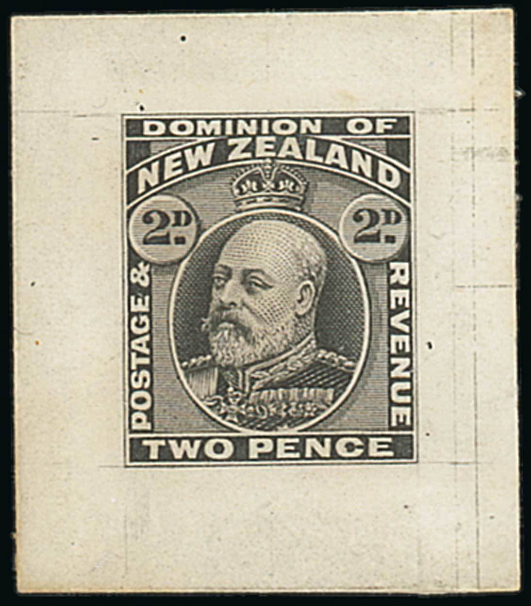 1909-16 KEVII 2d. die proof in black showing guide lines outside design, on thin card (31x36mm.), fine. Photo