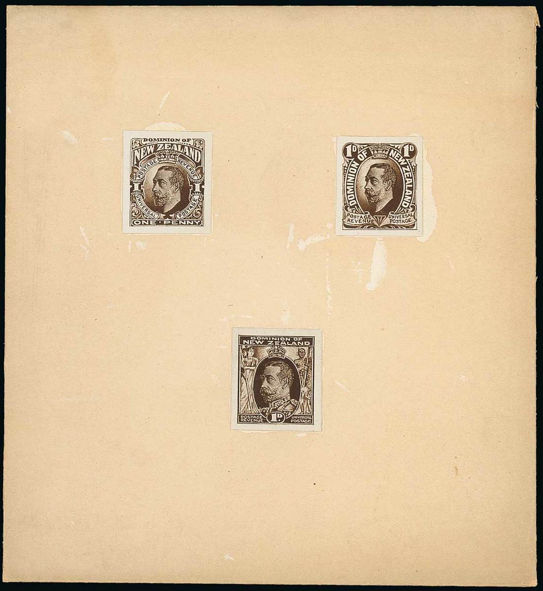 Perkins Bacon alternative essays of the 1d., stamp-size sepia photographs of three designs mounted on thick card (130x142mm.), fine. Photo