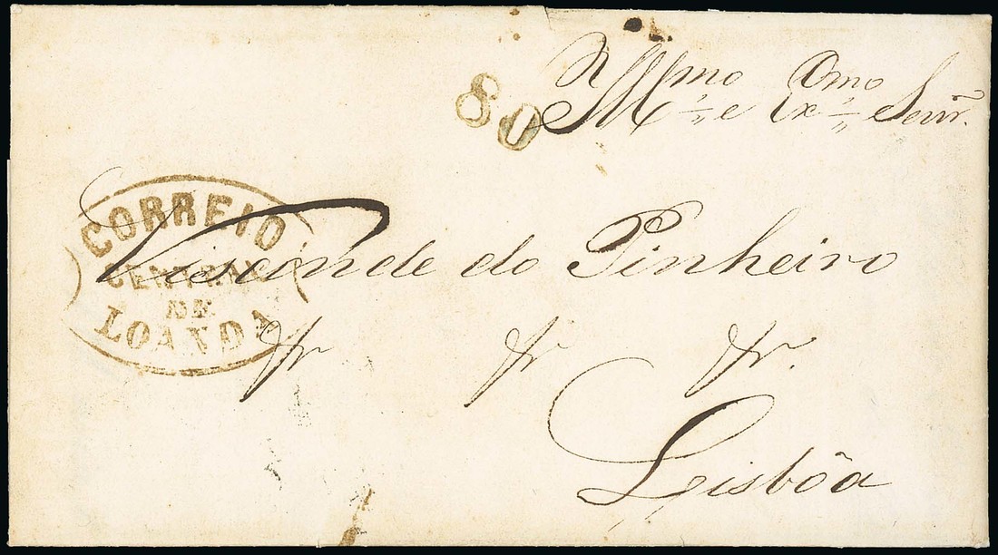 1854 (29 May) entire letter to Lisbon, headed "Ilha de Principe", showing "correio/central/de/loanda" transit h.s., handstruck "80" (reis) and, on reverse, clear arrival d.s. (11.10). Photo