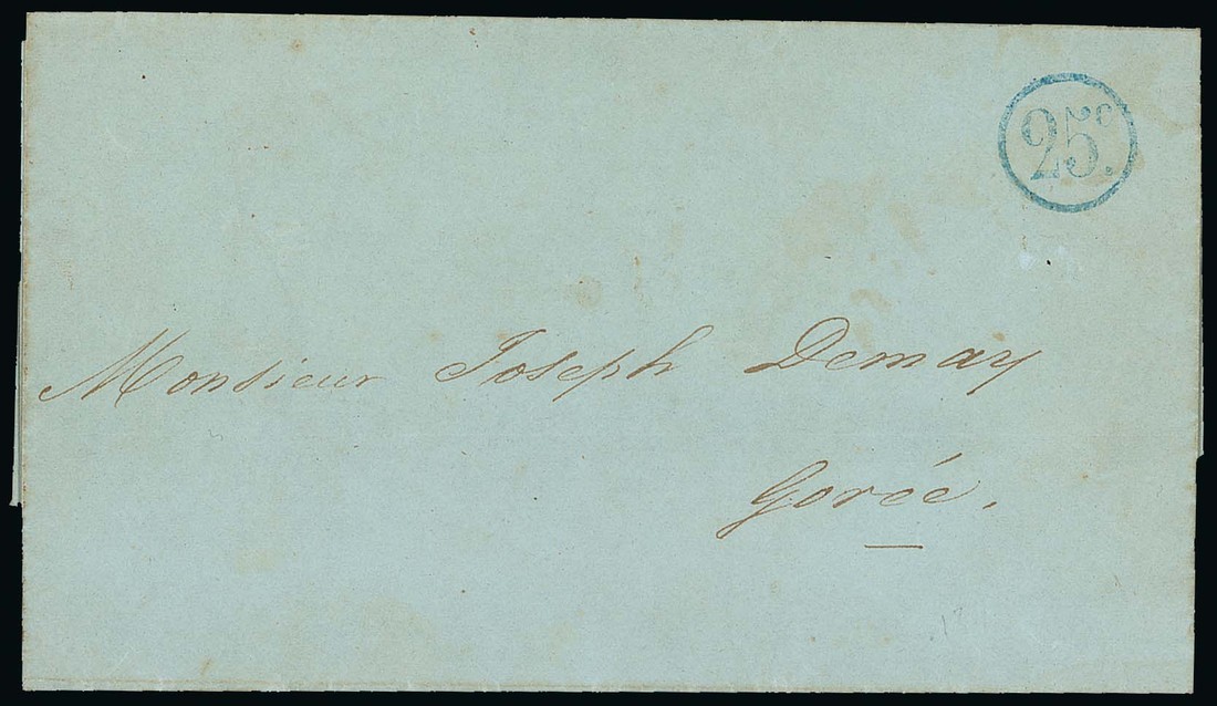 1844 (docketed) locally addressed Gorée entire showing circular-framed "25c" h.s. in blue. Very scarce internal mail. Photo